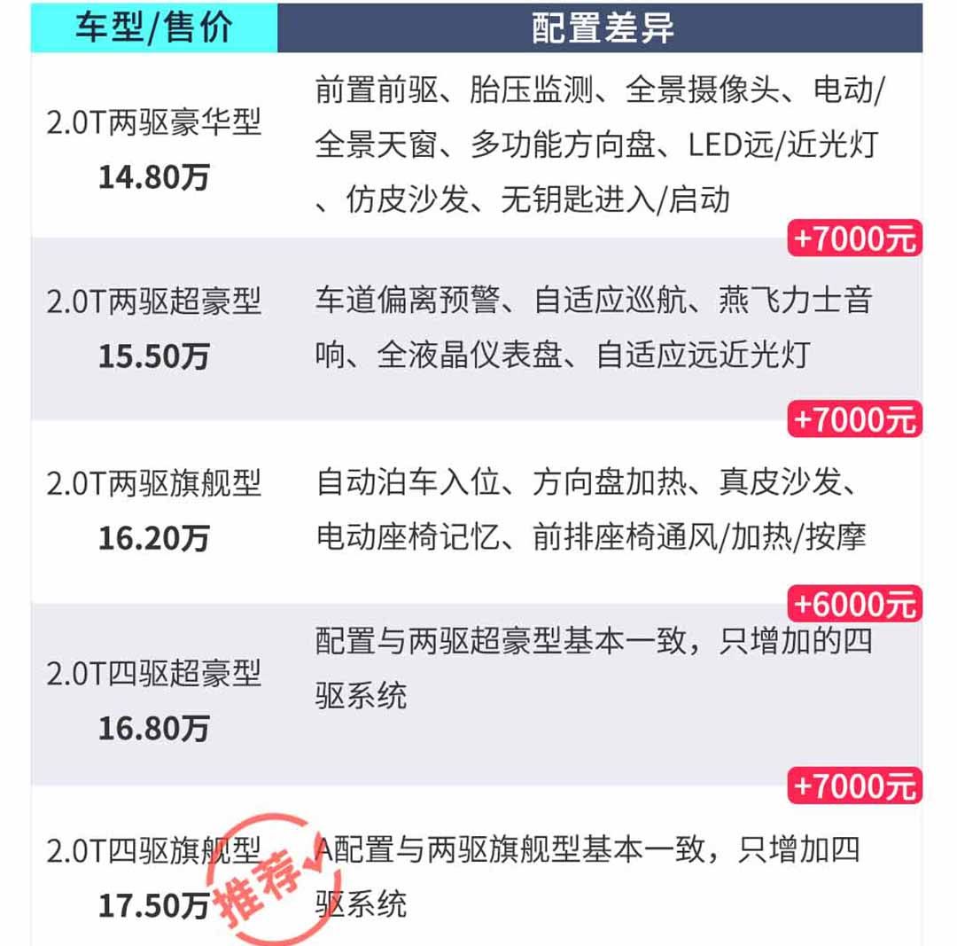 综合5款配置最为推荐带四驱的顶配车型,配置总体与两驱旗舰版如出一辙,各种安全、舒适、实用的配置一样不落,教授认为既然身为SUV,天生就应该具备探索未知的远方的能力,同时购买豪华品牌SUV,四驱系统带来的面子加成是两驱远不能比的。