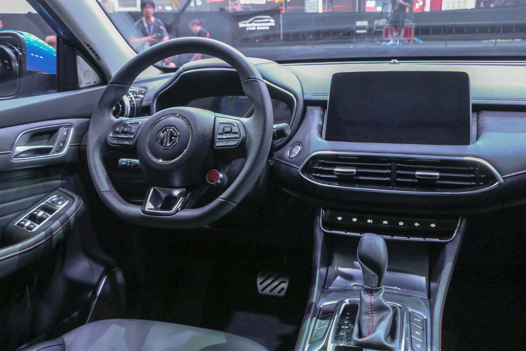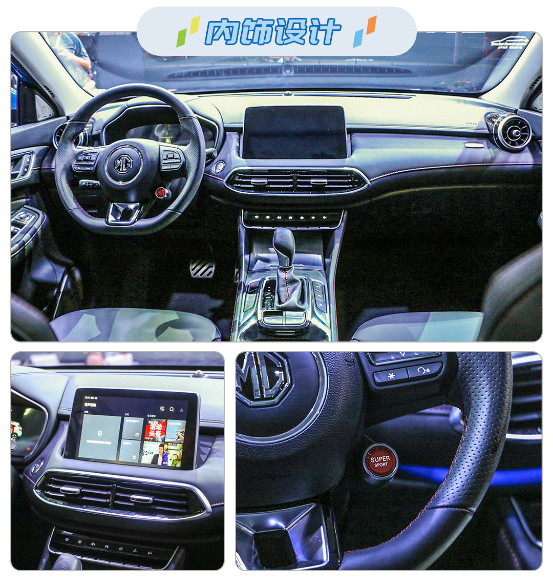 最大亮点在于方向盘,采用平底三辐式设计,那个红色的“SUPER SPORT”按钮最吸引人,像法拉利、保时捷一样的位置设计, SUPER SPORT超级运动模式是名爵HS的性能主打,就好像变身器颇有仪式感。中控区域很简洁,10.1英寸的中控屏集成了大部分功能,下方式空调操作按键,保留了很多实体按键,排列清晰,设计感也挺不错,整个中控布局看起来是很舒服的。