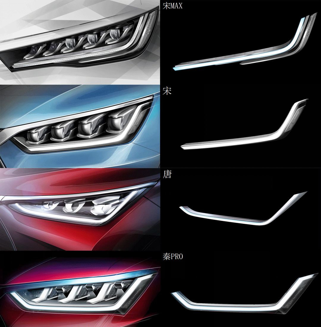 就拿新一代唐的“Dragon Beam”而言,它的设计融合了“龙”与“飞檐”等元素,全LED灯带藏于龙须之下,看起来就犀利非常,内部细节更是运用了飞行器、钻石透镜等元素来进行打造。此外,宋MAX、新一代宋等新车的大灯设计都延续着这一家族化设计。艾格先生就是想以此提升比亚迪车型的辨识度,而教授也觉得,一个成熟的车企,能被人一眼认出这个很重要。