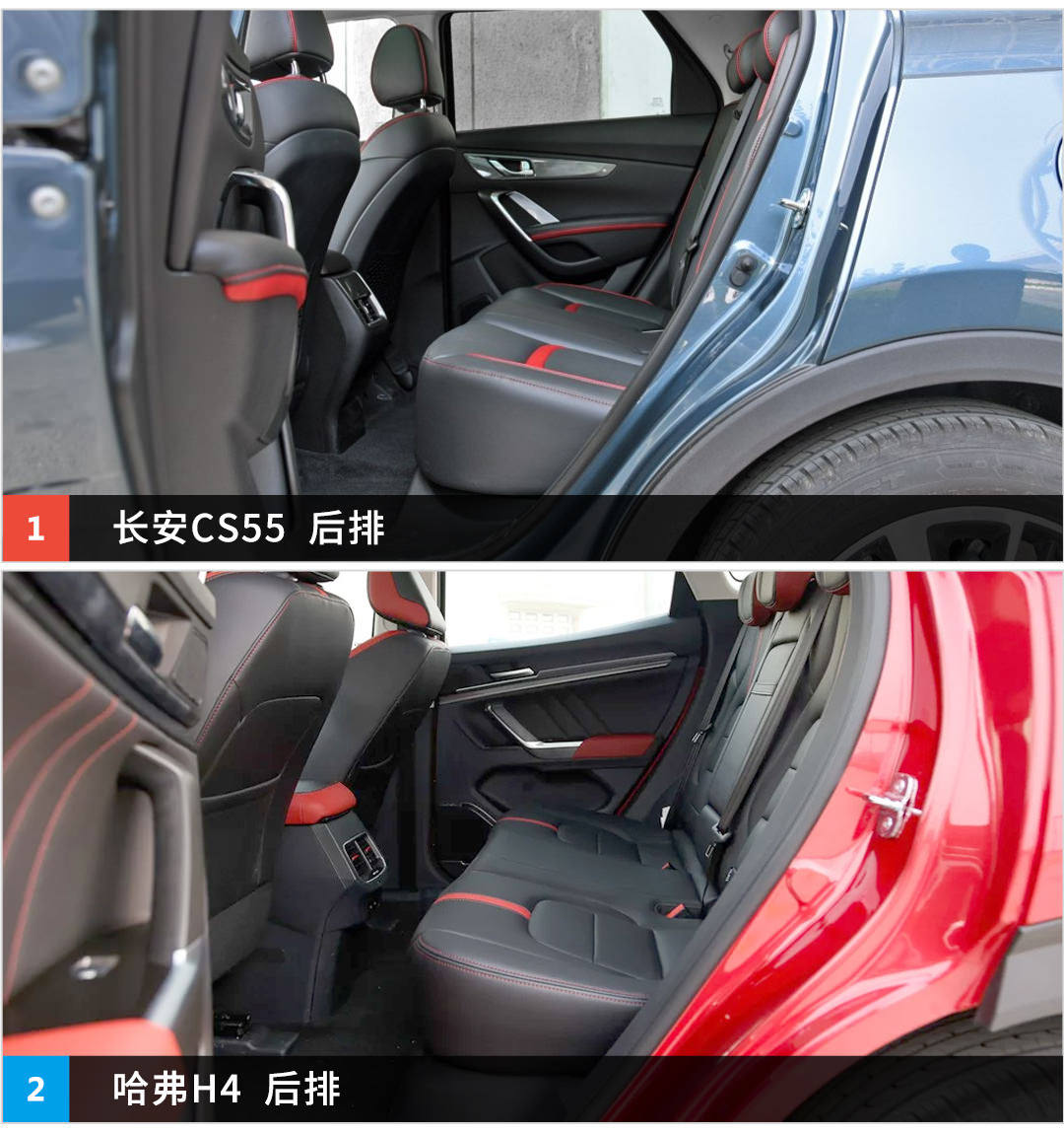 至于实际的乘坐空间,两款车表现大体相当,长安CS55拥有更好的腿部空间表现,而哈弗H4在头部空间方面表现更好。两款车的后排地板都接近全平,这点值得表扬。