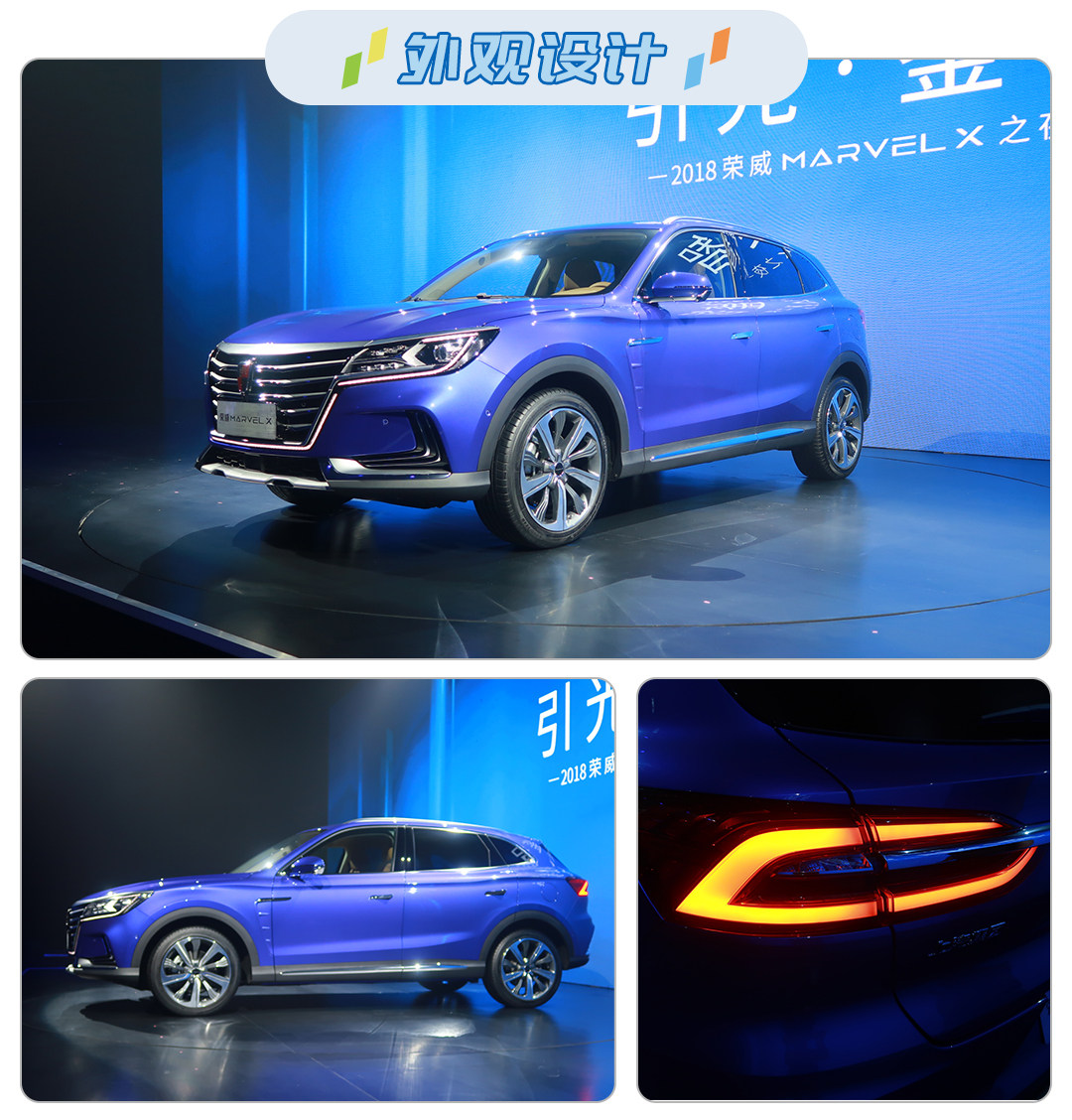 这是一款全新的纯电动SUV,但却没有普通纯电动新车“该有”的样子。的确,为了打造一款高颜值、高级的新能源车,荣威MARVEL X可以说是花了很多的心思,并不是轻描淡写地拉大拉长现有的某一款产品,封住前进气格栅,再加上几个新能源小标志。