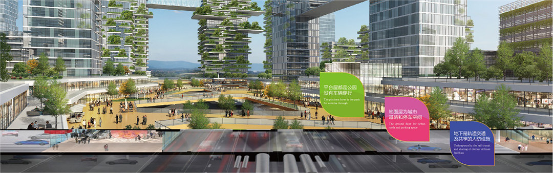 据介绍,南方智谷未来规划格局集聚产业升级、科技研发、生态人居、社会管理和高端服务要素多位一体,以高容积率、低密度为标准,形成一个高端人才聚集地。南方智谷范围内建筑均采用“空中走廊”形式联合起来,打造TOD模式的立体城市。