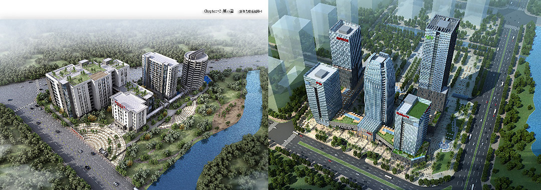 为了区别于传统钢筋水泥、玻璃幕墙打造的写字楼,小镇接轨国际生态办公设计,以碧桂园集团总部大楼的垂直绿化为蓝本,在三层立体交通之上搭建生态与商务有机结合的垂直绿化建筑,在建筑外立面均设置绿化点缀,以灌木及爬藤类花池实现建筑立面的垂直绿化。