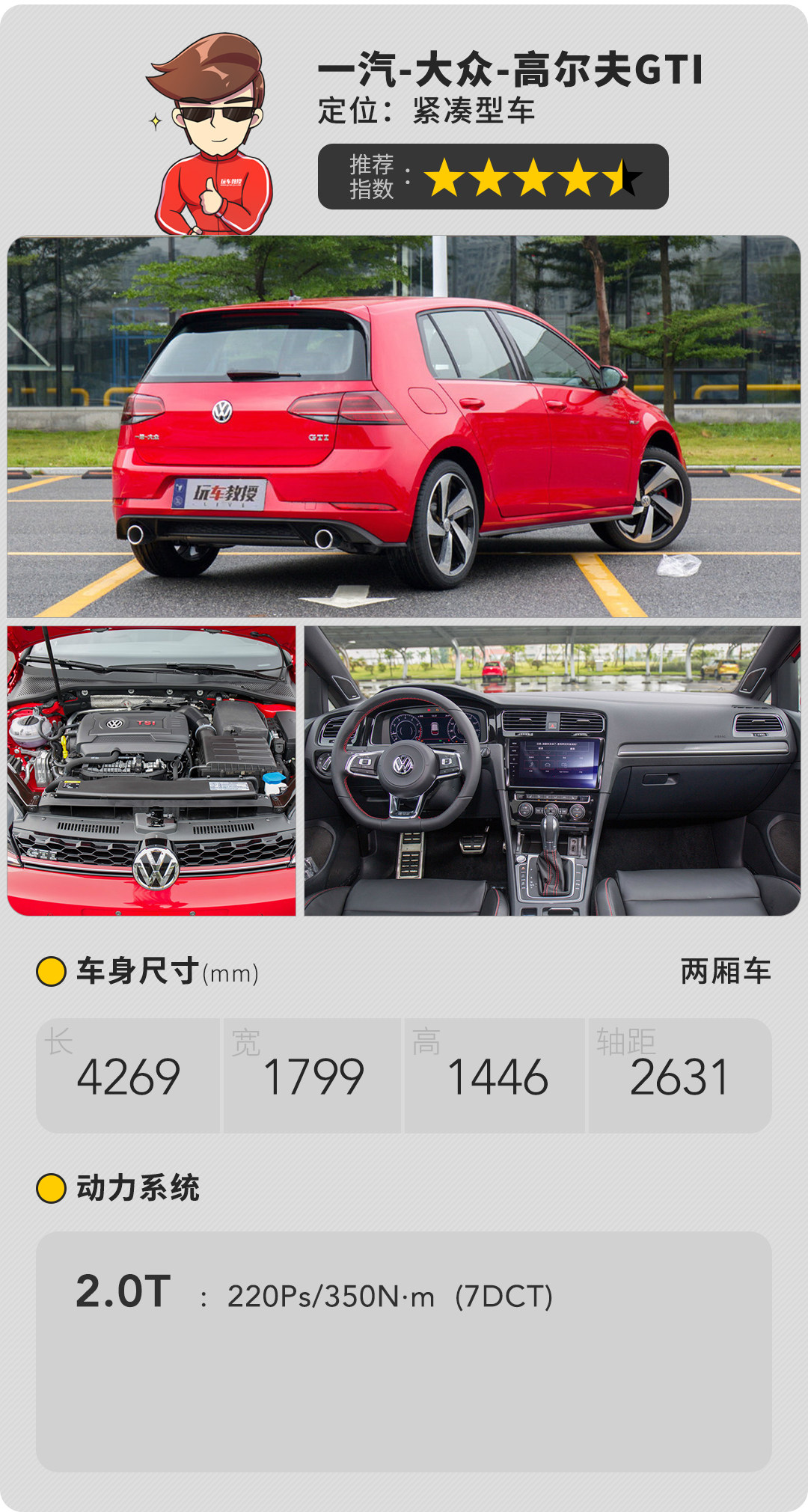 高尔夫GTI从来都不是走量的车型,它拥有2.0T的强劲表现以及两厢车出色的操控水准,再搭配快如闪电的DSG变速箱,只要试过一次,所有质疑的声音全都会消失,这就是小钢炮的魅力。车子本身完成度已经很高,原厂状态下都能开得非常开心。