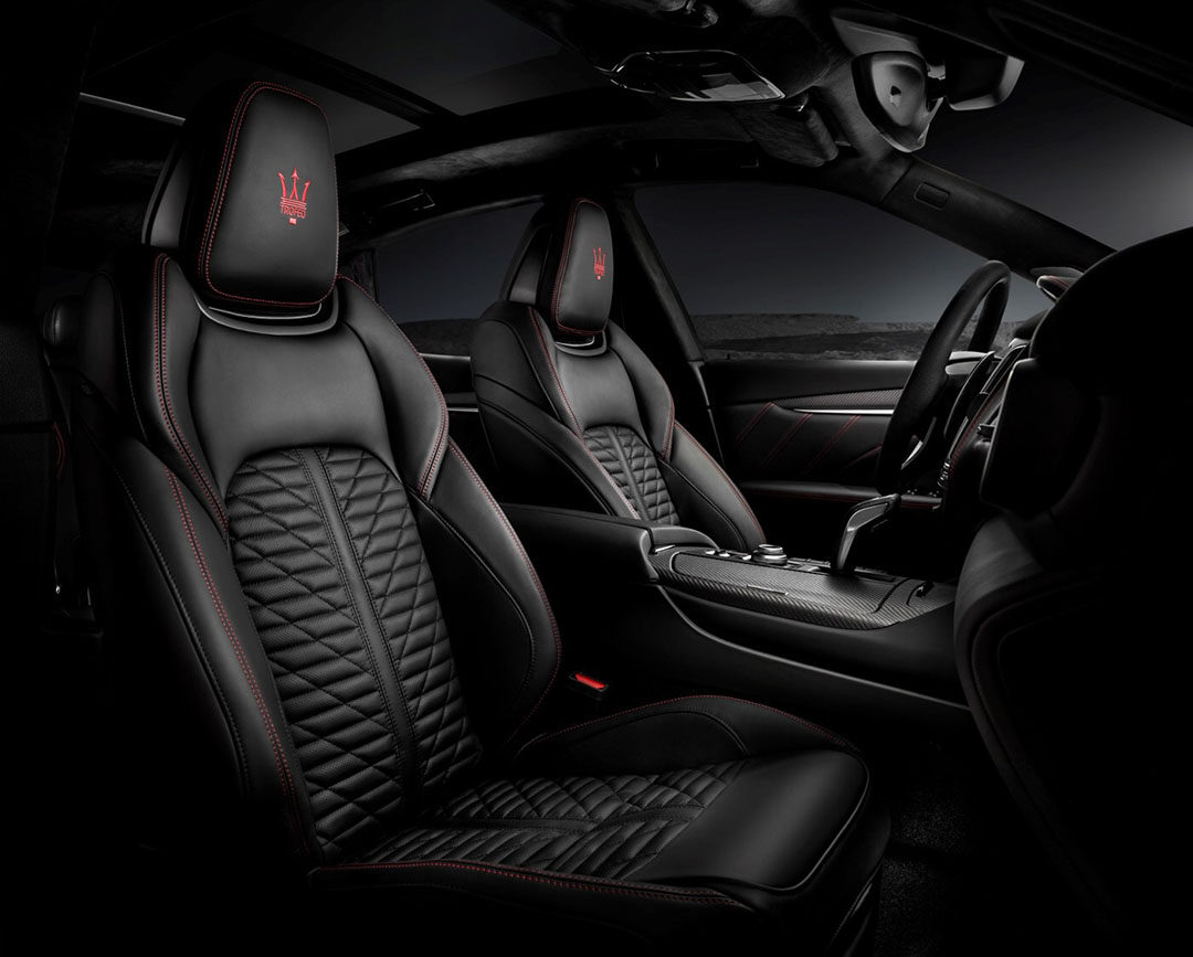Trofeo精致奢华的内饰设计与其犀利动感的外观相得益彰。其内饰材质经过玛莎拉蒂严苛的甄选,旨在打造至奢至逸的车内环境,为驾乘者开启一场激情、舒适、乐趣横生的惬意旅行。富有支撑性的运动座椅采用“Pieno Fiore”高端全粒面天然真皮,提供黑、红和棕三种颜色选择。“Pieno Fiore” 精选自北欧小公牛皮,触感柔软细腻,经特殊鞣制工艺处理后,这种皮革会随时间的推移呈现出独有的纹理与光泽,彰显车主与众不同的个性。此外,源自法国皇室的手工双缝线工艺、头枕上独有的“Trofeo”刺绣标志也于细节之处体现了品牌的专属性。精致的手工制作细节,如新型亚光碳纤维编织纹材料内饰、碳纤维换挡拨片、专属的仪表显示样式,以及特别打造的表盘样式的玛莎拉蒂时钟,都以优雅的方式强调了这款非凡车型的运动风格。