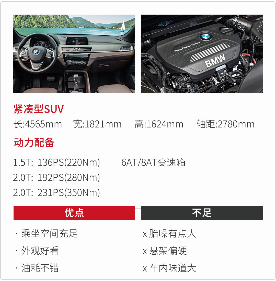但2.0T车型就要“宝马”得多。相比起韧性十足的底盘和精准的转向,个人认为,宝马X1更值得点赞的还是其8AT变速与发动机之间的匹配,有同行曾评价到:“这款ZF的变速箱已经和宝马的发动机融为一体了”。作为BBA的紧凑型SUV,不仅是操控,综合实力也要比奔驰CLA和奥迪Q3强。