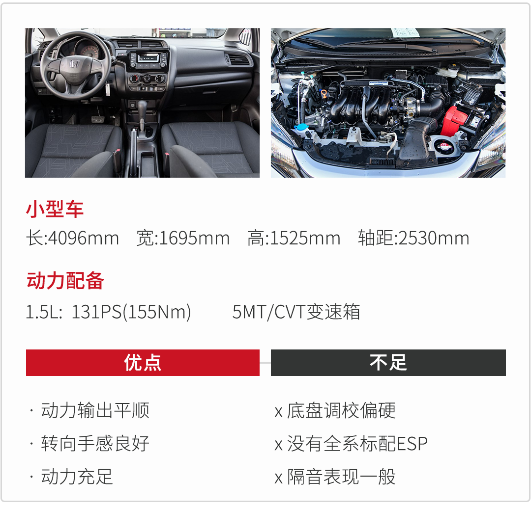 飞度搭载的是L15B2自然吸气发动机,具备i-VTEC和直喷技术,最大功率和扭矩分别为131Ps以及155N·m,日常驾驶时动力输出平顺充足,你可以轻松驾驭它,极其适合在城市中代步。虽然飞度有很多的优点,但是缺点也是比较的明显的,比如隔音差、减震较硬和配置较低等等。