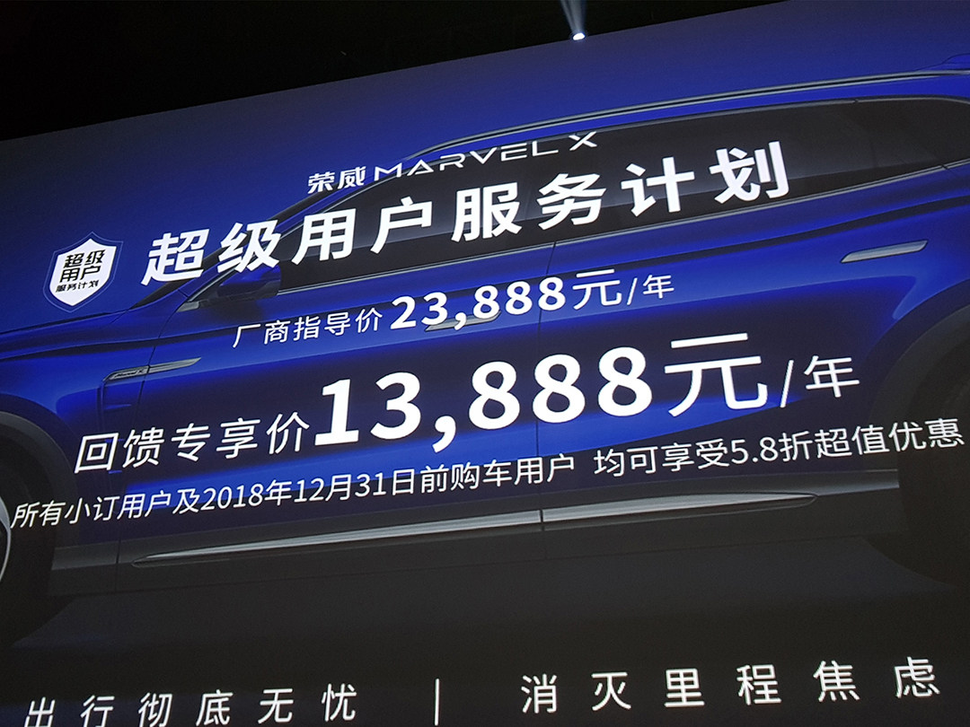 对于Marvel X,在没有试驾体验之前,我并不想过多点评什么。我对其上市时公布的“超级用户服务计划”更感兴趣。今年内买Marvel X再加13888,可享受一年的: