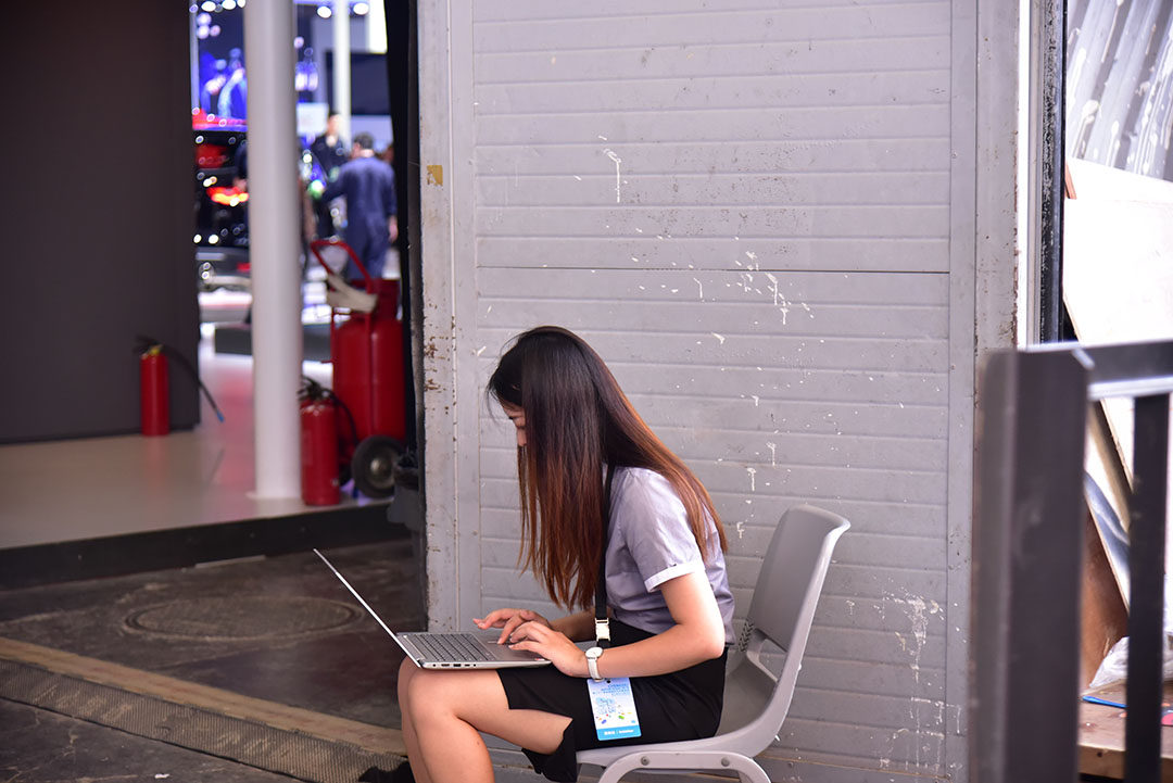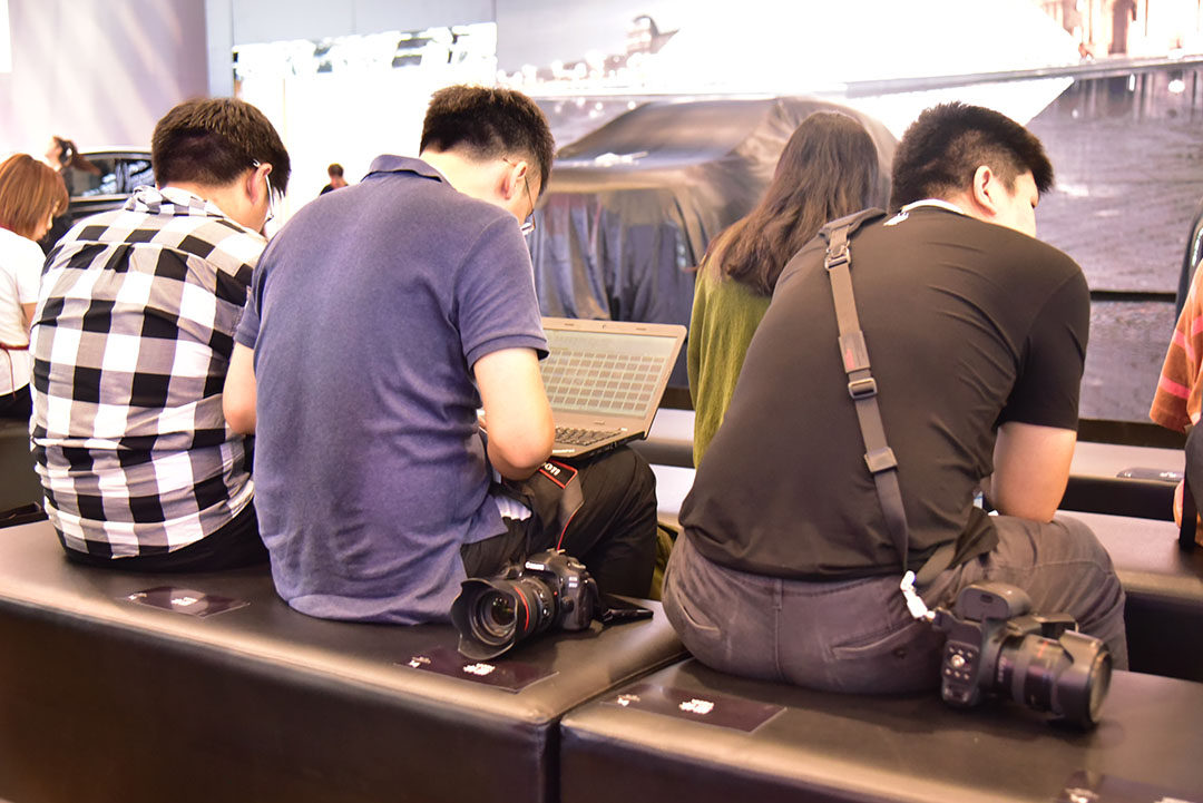 在新车型即将发布的时候,除了媒体关注的车型之外,媒体人也丝毫未能停歇下来。在座席中,经常可以看到媒体人员直接在电脑码字修图。有些时候,甚至结束了之后,还依然在工作中。除此之外,里面展馆的休息位置比较满的时候,为了方便,也在室外的座椅就直接进行工作,这种例子也是非常常见的。