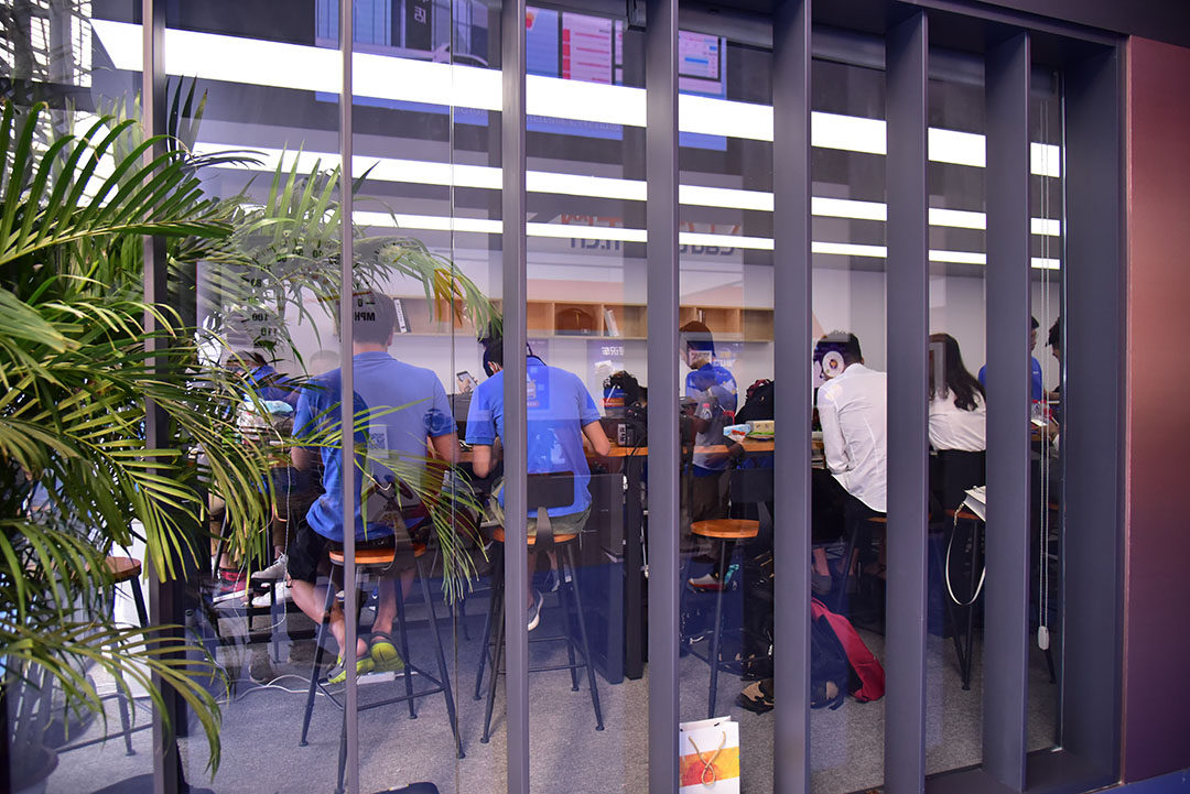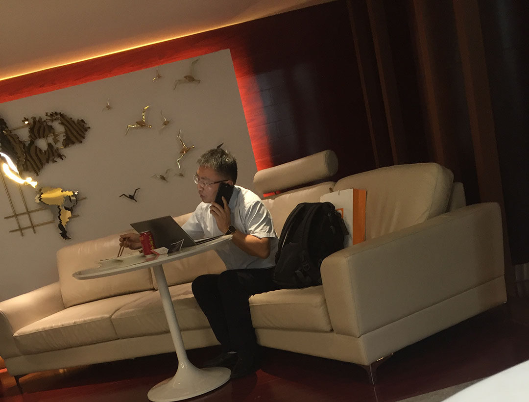 充分利用一丁点的时间,过道上的座椅也成媒体的工作的地方。
