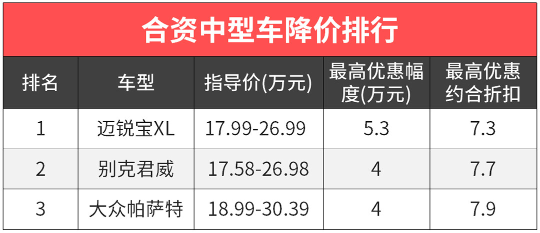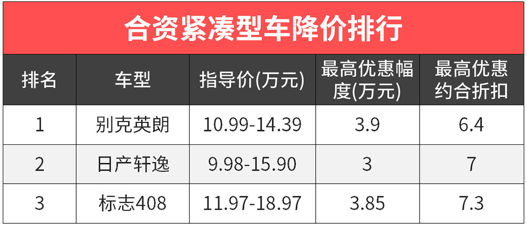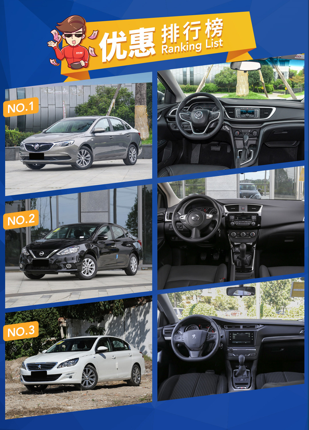 目前最优惠的车型是别克朗逸,想必大家也都知道为什么有这么高的优惠(换三缸发动机后销量下滑严重),最高可达6.4折(上海地区,并非全国各地都有这么高的优惠)。其实这样的价格真的很有可能是在放弃利润稳定销量,从而保证整个市场规模的持续运作,至于三缸值不值得买,只能说不排斥也不推荐吧。
