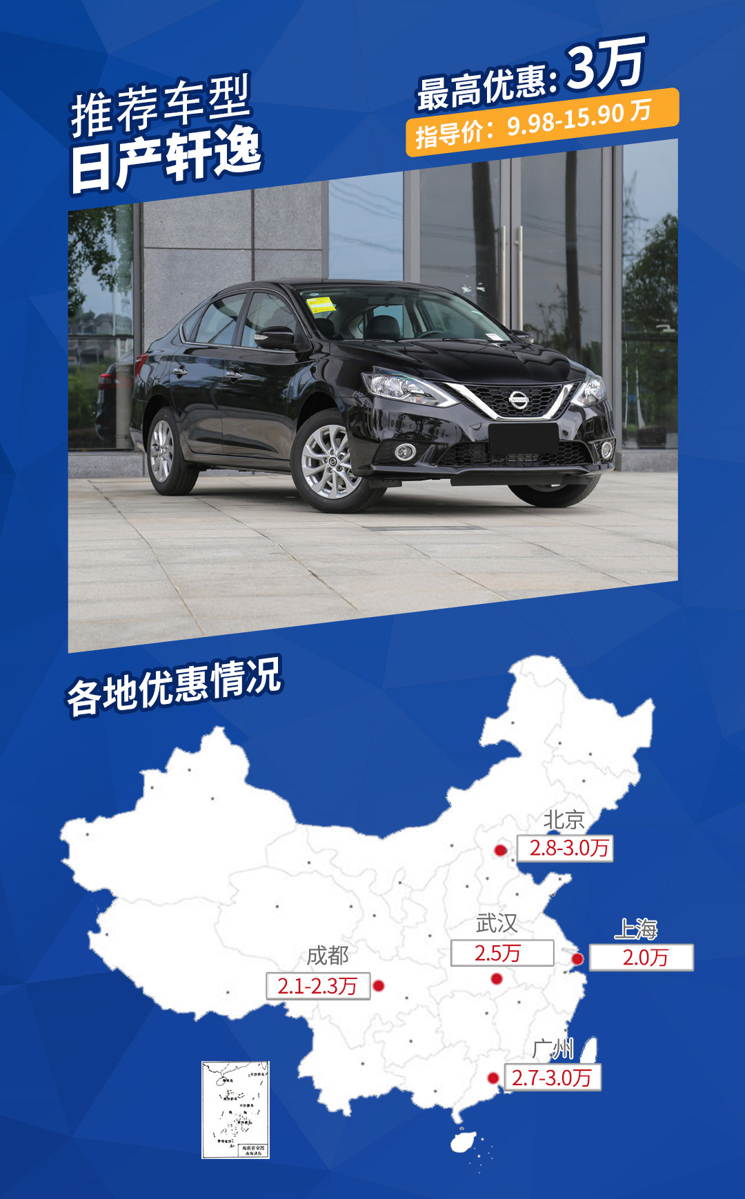 最推荐的车型是日产轩逸,最高优惠幅度达3万元,而且这个优惠幅度也是近期提升上来的,但它并非销量不佳而放大优惠,反倒是销量极其稳定,几乎每月销量都是整个轿车市场的TOP3。比起同样水平的卡罗拉,性价比更高。