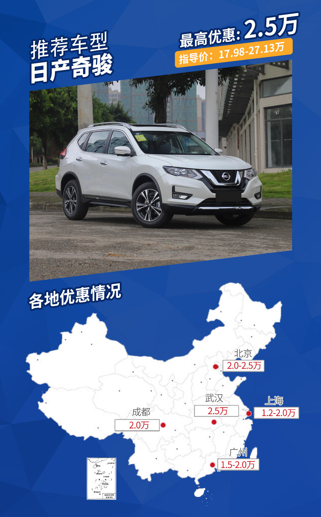 最推荐的车型无疑是日产奇骏了,虽然CRV已经从新投放市场,但似乎“机油门”事件的前前后后,对奇骏也没有什么积极影响,销量是一如既往的问题。奇骏也是这个级别少有不用怎么推广,销量就非常好的车型了,加上目前比较大的优惠,作为家用车真的十分推荐。