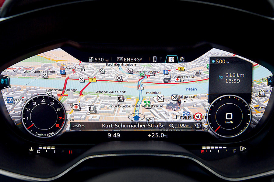 说起来,路虎其实更比奥迪抢先一步使用全液晶仪表显示,不过奥迪的系统胜在弹性极高,设定手法也远比前者直接舒服。这套系统自2014年在TT上初度亮相以来便成为现代汽车的楷模,倣傚者络绎不绝,特别是国内的自主品牌,但至今依然无人能出其右。