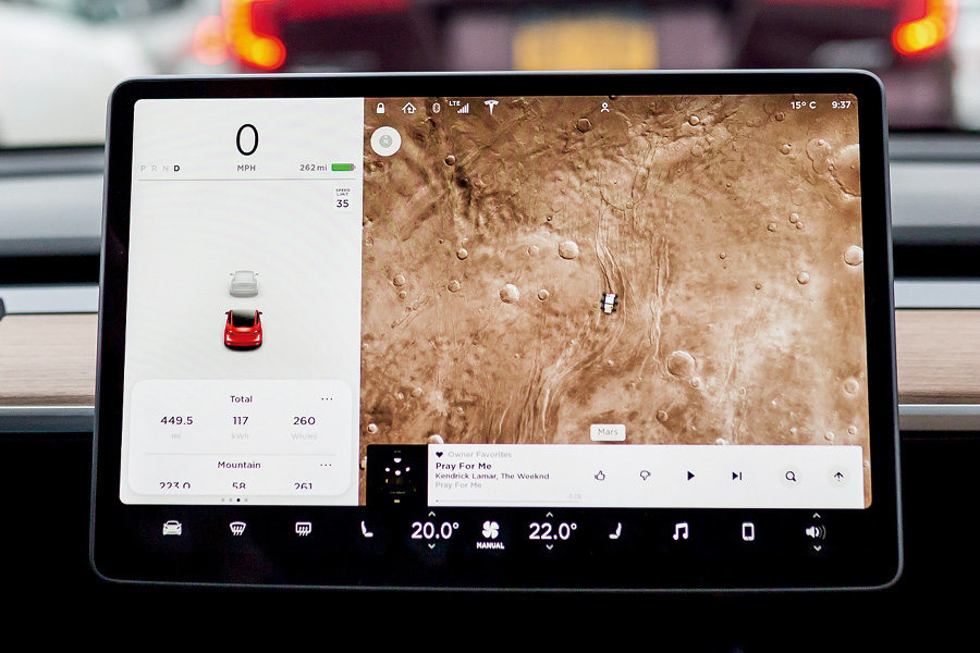 那群做高科技的设计师一旦把保守派的思想家打倒会发生什么?Model 3就是答案。包括车速在内的所有数据都继承在中控的大屏幕上,这真的不是极简主义走火入魔吗?