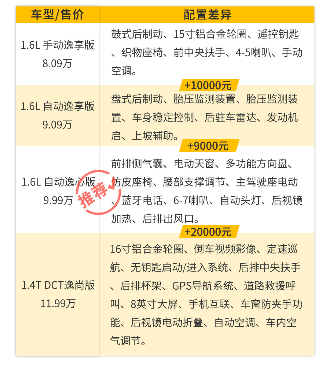 但是再加9000元,拥有的配置就要丰富得多,许多配置虽然说可有可无,但有了之后又的确能给你带来更出色的用车体验,也更符合它自称旅行车的定位,所以综合考虑,最推荐的车型则是1.6L自动逸心版。