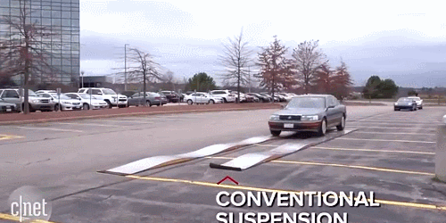 后来工程师就使用了橡胶制的轮胎,行驶系统和车身之间用了弹簧去连接(被称为悬挂系统”)。这种两种弹性部件的应用很有效的减少了车身和路面之间的直接联系而提升了舒适性。而现代的汽车多用调教更精巧的悬挂系统。这类悬挂系统最大的作用就是降低路面状态对车身的影响。所以舒适性的第一点就是“车身不受任何路面状况影响”,这点应该比较容易理解。
