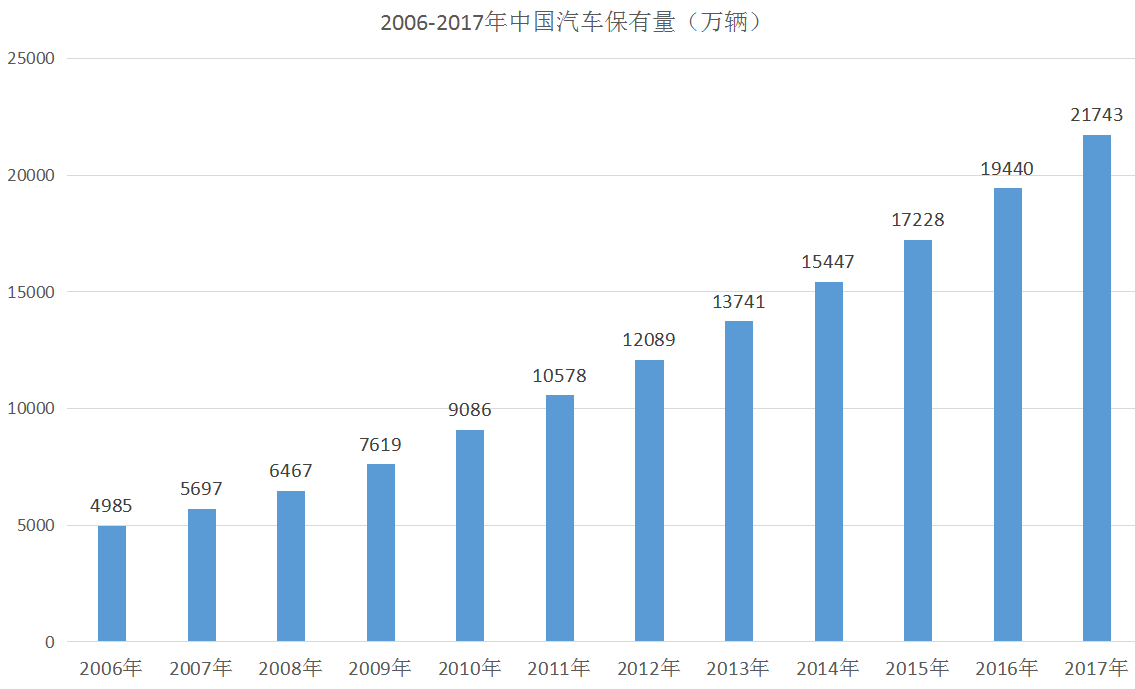 这话确实有一些道理,但是相比较十多年来保持不变的人口数量,中国的汽车保有量却是在持续上升的。截至2008年底,中国汽车保有量为6467.2万辆,到了2017年,这个数字变成了2.17亿辆。也就是说汽车的千人拥有率正在飙升。