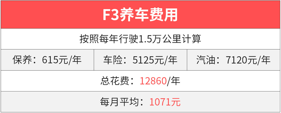 很多人第一辆车选择了比亚迪F3,虽然价格低,只需5-6万,但它的品质绝对是可靠的,卖了这么多年消费者的口碑依然坚挺。全系标配仿皮座椅,这在10几万的车中都不多见,多个车型支持无钥匙进入/启动功能,油耗还有后期保养费用也很低,这样的车除了低端一点之外,妥妥的家用好车。