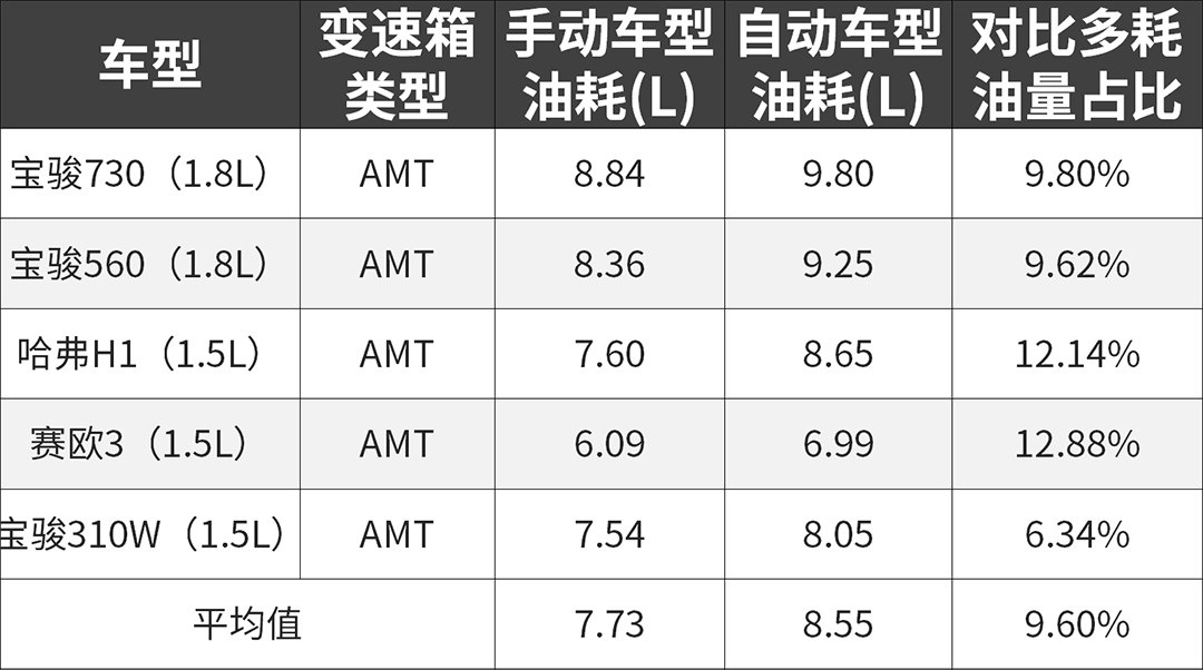 看到这,可能不少消费者就要说了,这AMT、DCT、CVT、AT都说自己省油,那么他们之间到底谁会更省油呢?彼此间的差距究竟会有多大的差距呢?