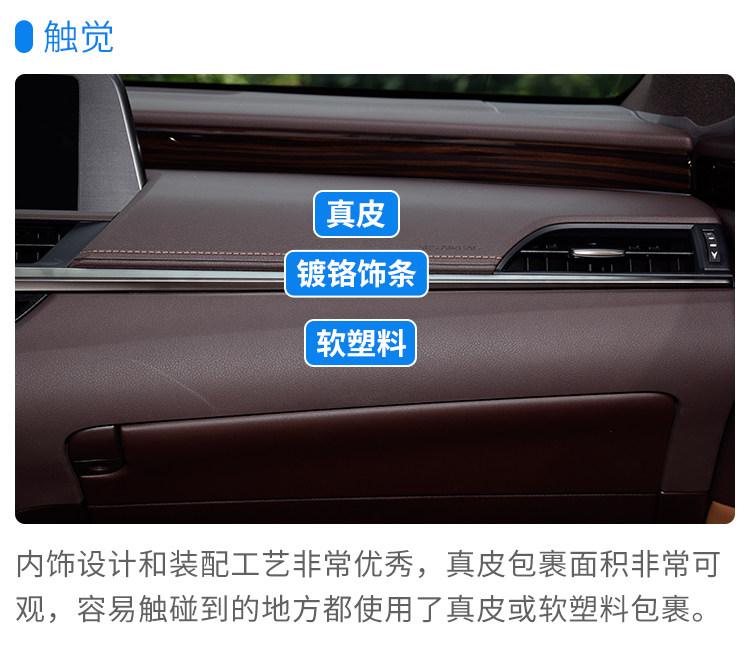 新一代雷克萨斯ES的座椅造型优雅,本次试驾的次顶配车型配备了具备前排通风和加热功能全真皮座椅,座椅填充物软硬适中,前后排坐垫都能提供非常到位的腿部支撑,而前排座椅的侧向支撑性表现也很不错。