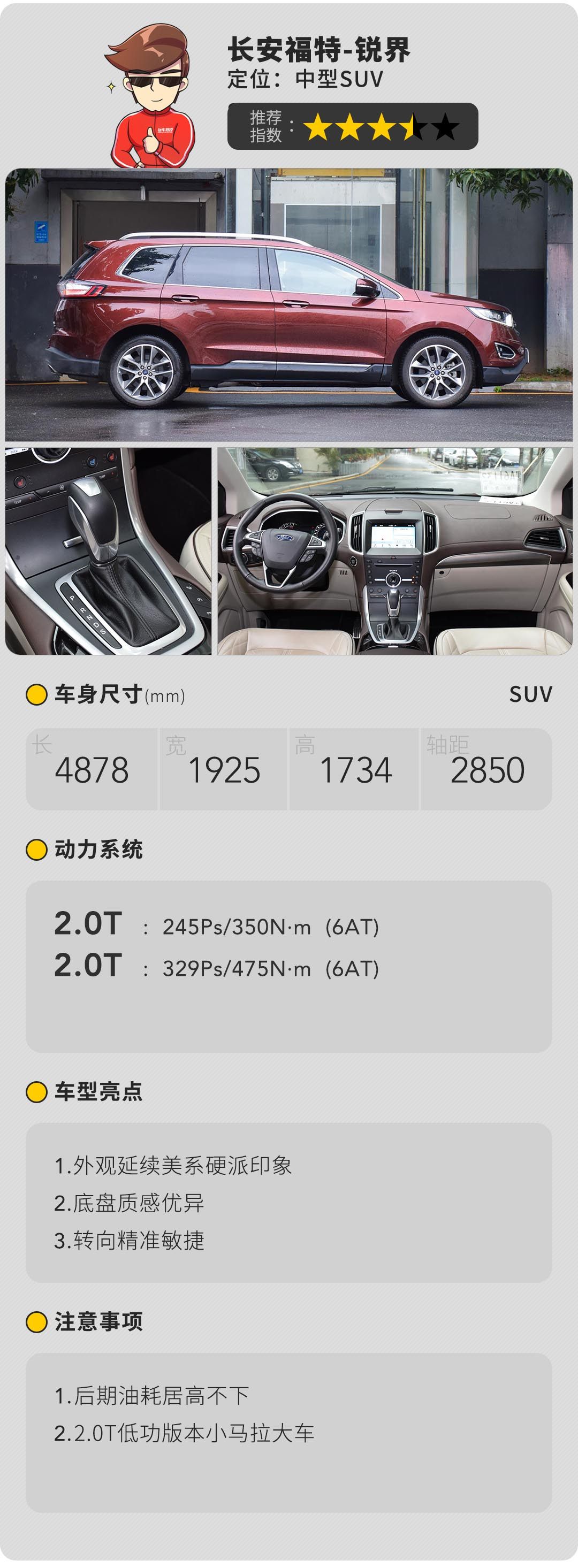 汉兰达长期受制于发动机产能不足的影响,赋予了锐界充足的生长空间。雄壮威猛的外观造型,确认过眼神,是美系肌肉的感觉。深厚的动力储备、紧绷且扎实的底盘质感,恰当好处的侧倾抑制,谁说7座SUV不能谈运动?鉴于福特在内部空间利用上的短板,锐界庞大的车身尺寸却无法很好转化至实际的乘坐空间上,其次感人的油耗是钱包的最大杀手。