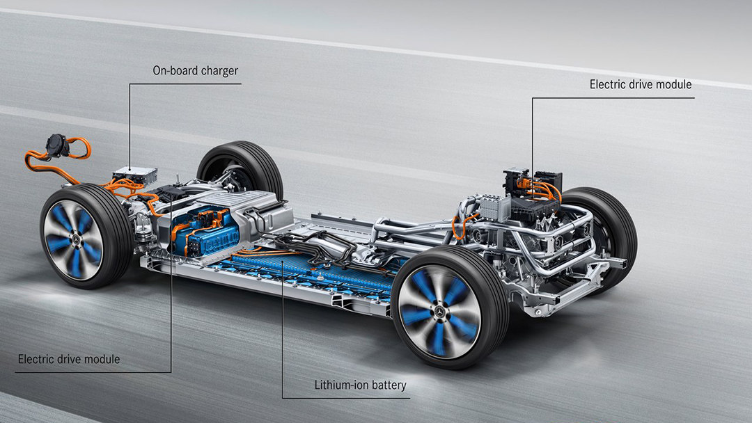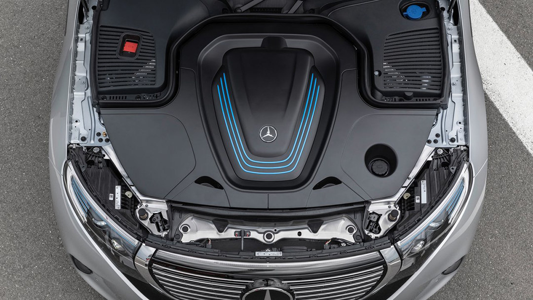 EQC采用了位于前后轴的两部异步电机作为动力来源,并由此实现了电动全时四驱,综合最大扭矩为408马力、综合最大扭矩为765牛米,官方称百公里加速时间为5.1s,电池方面则是由80千瓦时的锂离子电池组构成,重量达到了650Kg,相当于半辆本田飞度的重量,使得它有着超过450km的续航里程。在直流快充模式下,10%电量充至80%不过是40分钟。
