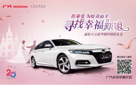 广汽本田第十代雅阁搭乘爱、为好奇而来,打造首届 “寻找幸福新娘”赢万元豪礼的大型评选活动,提倡时尚文化个性魅力,崇尚女性美和才气,召唤你的好奇心,共同见证新娘魅力。