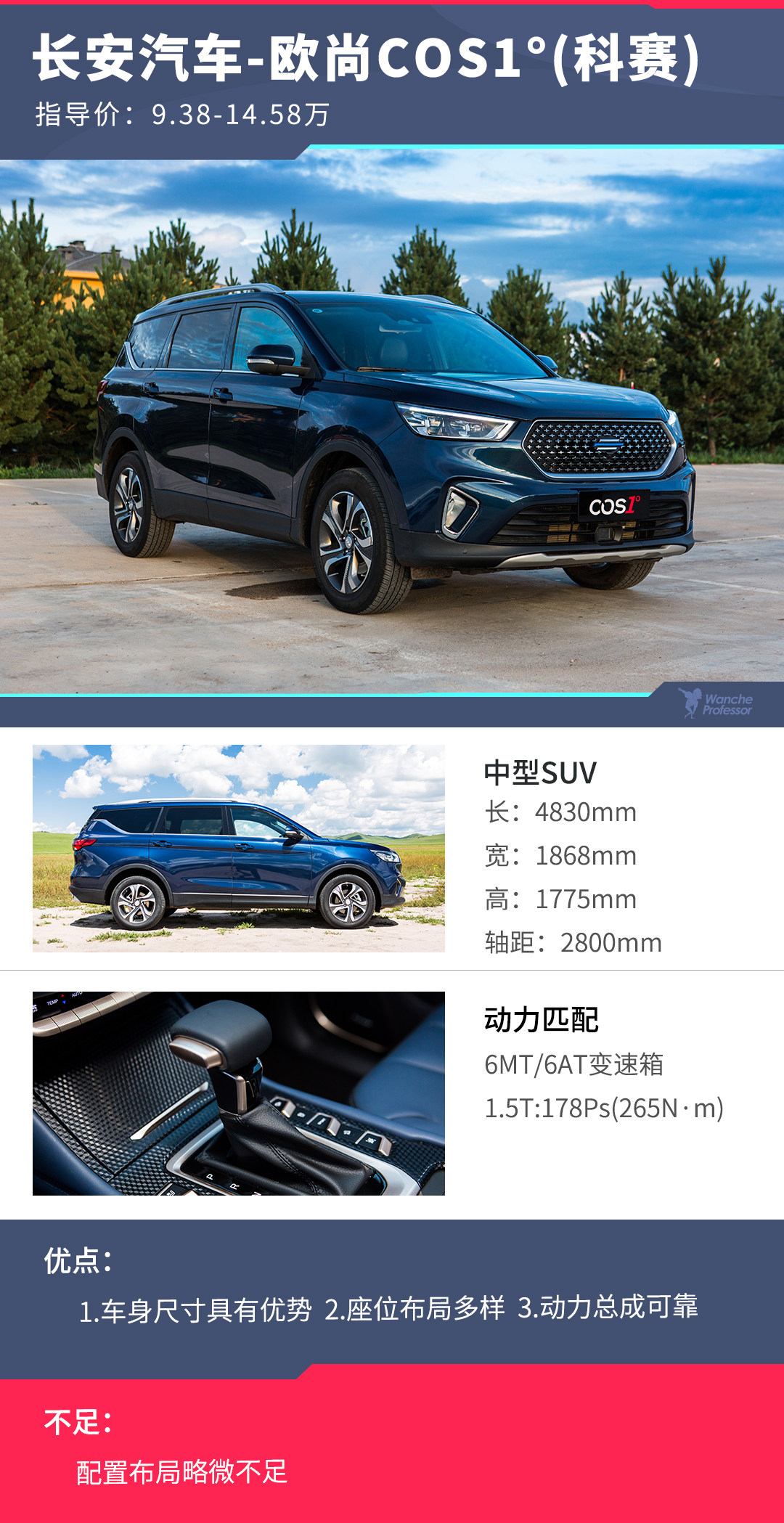 2018年9月10日,欧尚COS1°(科赛)正式上市(下文简称科赛),全系细分车型达到7款,由于细分款型较多,价格跨度也达到5万多元的幅度,也容易让人感到选择困难,所以七款细分配置中,哪款最值得入手,本文编者便略微分析一番。