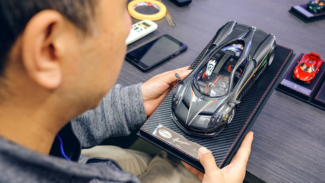 以这款1/6 帕加尼 Huayra V12引擎的模型来说,除零件生产和喷漆之外,其余工序均由一位工人手工组装而成,制作需时长,价格自然也就提高了;这样一款V12引擎的模型售价接近6000元。