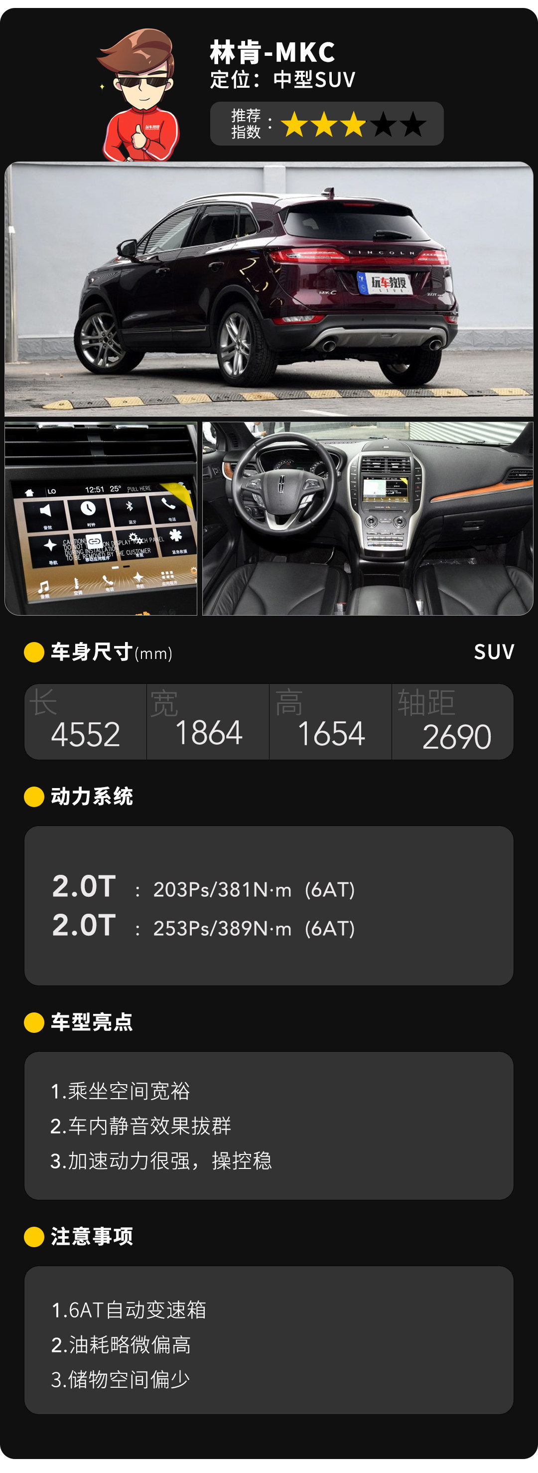 有着美式豪华特性的林肯MKC可以说是在中型SUV这个级别中尺寸最小,价格也最便宜的豪华SUV了,不过,短小的它真的非常精悍,自上市至今一直承担林肯品牌的销量责任,可以说是“一款车撑起了一个品牌”。
