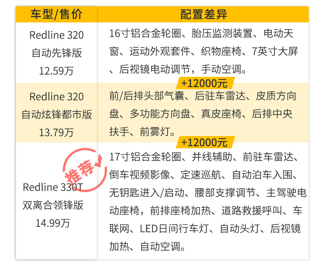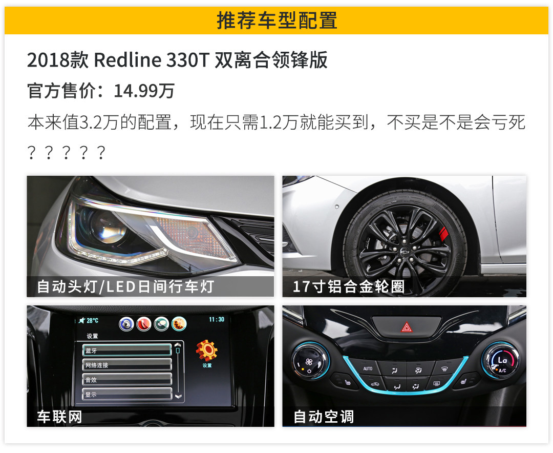 其次(注意),330T有Redline套件的车型比起同配置没套件的车型,要便宜20000元,虽然暂时还不知道雪佛兰这波是什么操作,但是感觉要赚翻了。