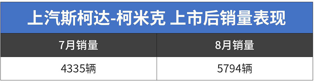 上市后的表现 :恭喜柯米克用亲民的售价成为上汽斯柯达销量最高的SUV车型。上市2个月,销量还算不错,月销量已经超过5k,这对于总被大众“抢”去光芒的斯柯达来说,成绩真的算可以了。偏个性呆萌的外观造型也吸引了不少女性消费者,在年轻市场有一定的地位。