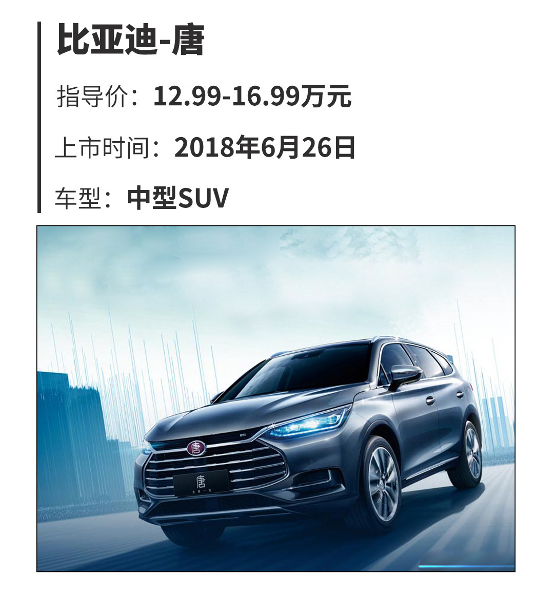 点评 :此前比亚迪唐只有插电混动版,如今有了燃油版。还记得在公布预售价为15-18万的时候已经有不少关注了;正式售价12.99-16.99万元,比预售价直接少了1-2万,更是直接炸了!而且用上了全新的设计语言,颜值提高得不止一点点,此前明显的短板没有了,比亚迪唐不火也难。据悉,纯电动版将在今年年底上市。集齐燃油版、纯电动版、插电混动版的比亚迪唐,产品矩阵更完善了,未来销量表现极有可能更上一层楼。
