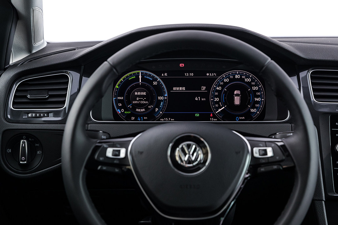 尺寸方面,长宽高:4270/1799/1482mm、轴距:2631mm。整体空间表现向燃油版高尔夫看齐,35.8kW·h的三元锂电池组被安放至前、后排座椅下方,锂离子电池组并未对尾厢空间形成过多侵占,储物空间达341L,后排座椅放倒后更是扩充至1231L。