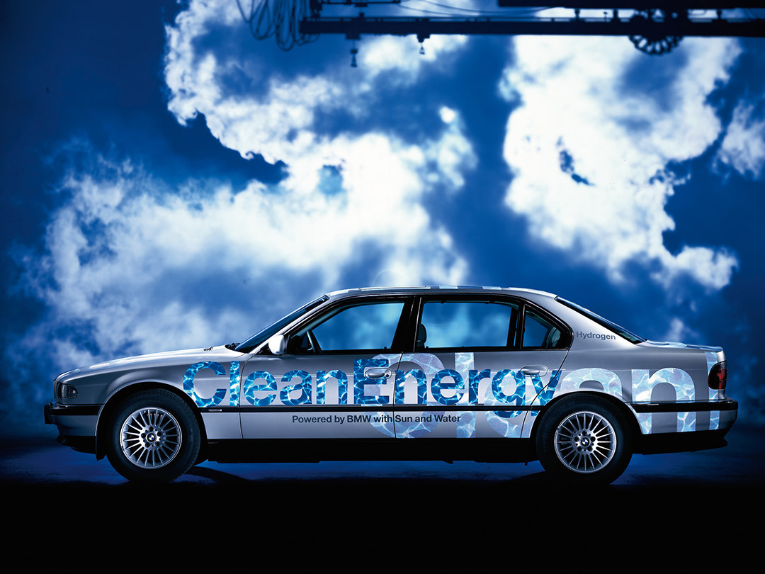 而说到氢能引擎,宝马是这一类氢动力车的代表性厂商,他们早在2000年就小批量生产了以第三代7系(E38)为基础研发的750 HL Cleanenergy Concept,经过改造加入氢气喷注口的V12引擎可以实现汽油与氢气两种燃料模式切换,在使用氢气时,可最高输出204匹马力,0-100km/h加速需时9.6秒。这款氢能版本的7系还同时装载了普通油箱和氢储存罐,据悉满750hL的氢能行驶里程达到了350公里。