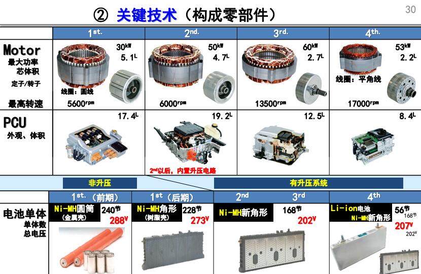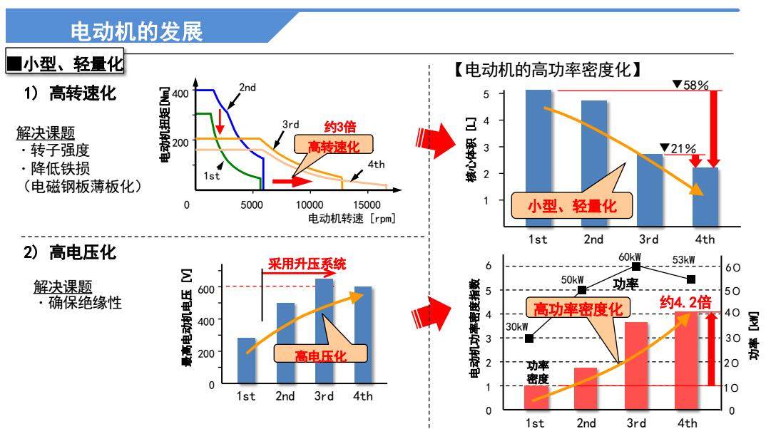 丰田在第一代普锐斯的研发期间便意识到电动化是下一代车型的关键,并且大力推进电机、电控以及电池这三项核心技术的改进,其目的是实现上述三大核心的小型轻量化、高性能化以及高质量和低成本化。
