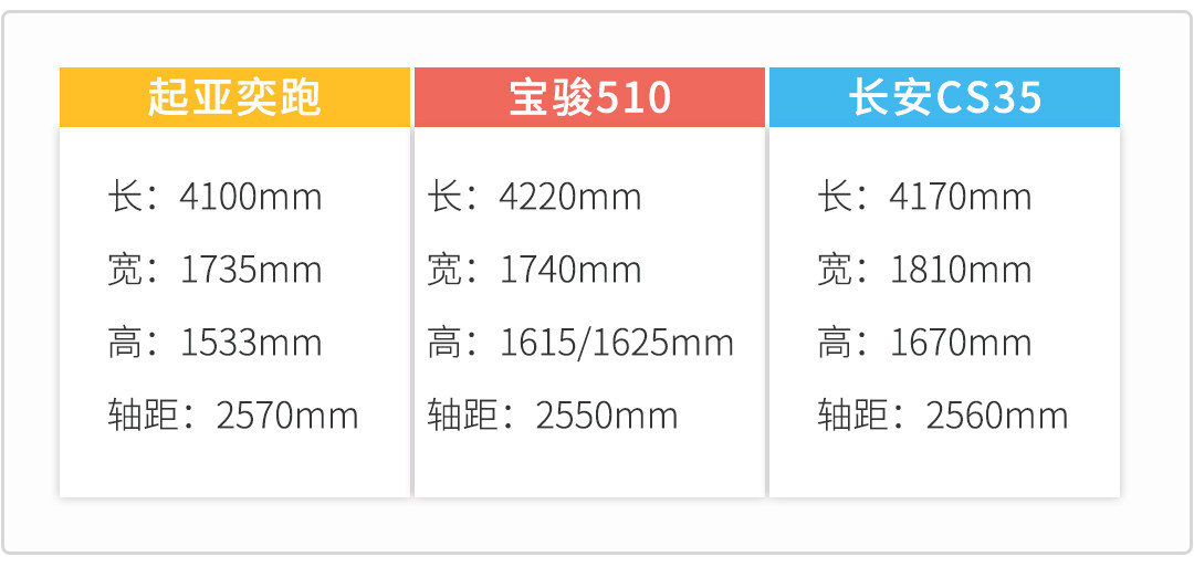 作为小型SUV,4米出头的车身长度最合适不过,紧凑的车身尺寸,驾驶起来会更灵活自如,三款车型的尺寸都很接近,也就长安CS35会稍微高一点,所以在头部空间上也有一定优势。