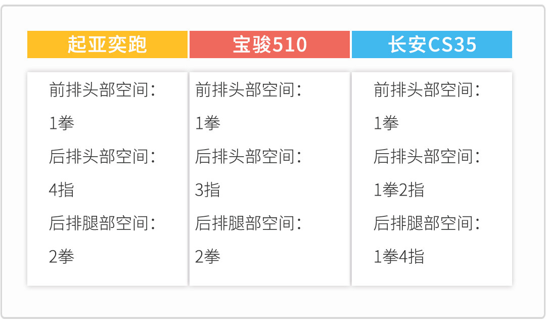 173cm的试乘员通过常规的测量方法所收集到的数据如上表所示,长安CS35的后排头部空间的确很出色。不过综合而言,三款SUV的乘坐空间都非常不错,看上去好像跟许多紧凑级SUV没什么区别,但实际上,也有牺牲一定的行李厢空间,而且实际坐上去的空间感也会有所区别。