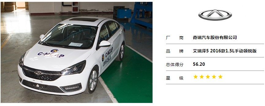 在2016年的C-NCAP安全碰撞测试中,艾瑞泽5获得了总分56.2分的同级最高安全评价,这也说明自主品牌在车身安全设计上有了长足进步。