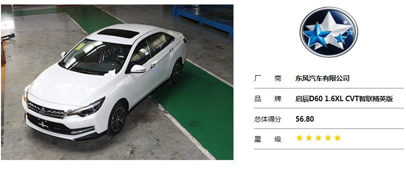 启辰D60的安全性能也相当好,C-NCAP的安全碰撞测试评价总分为56.8分,D60不仅价格实惠而且安全性能也相当优异。