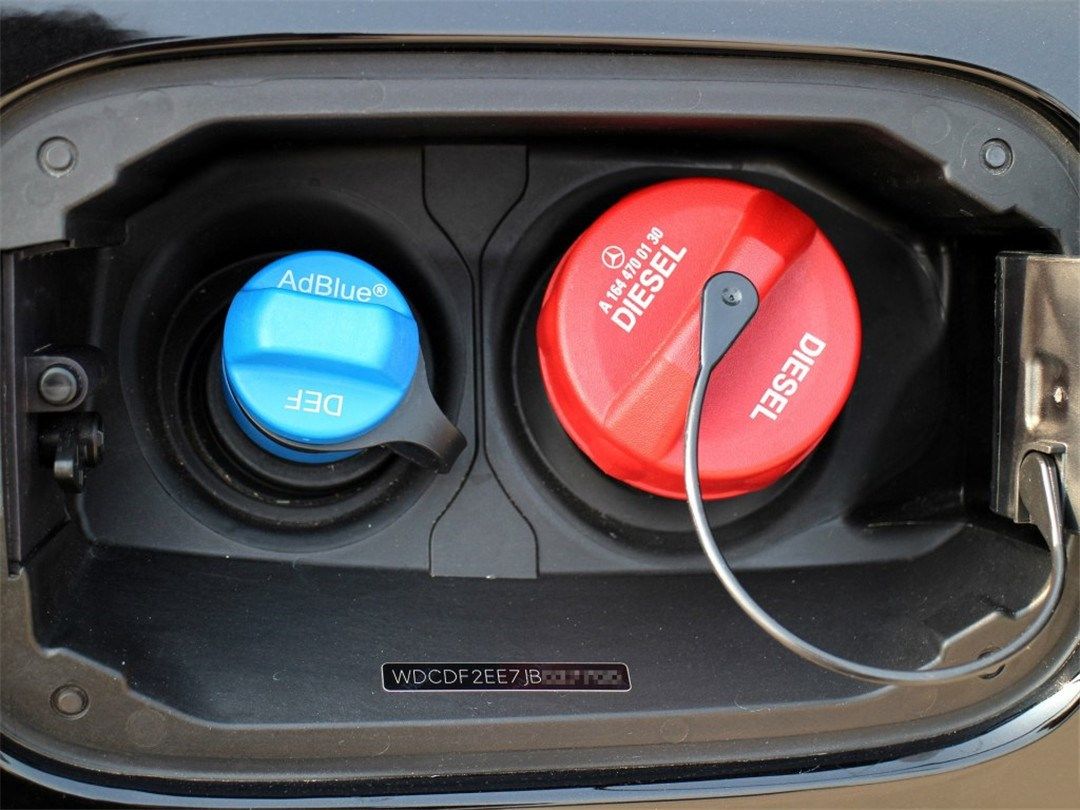 上图中左边蓝色盖子处就是尿素箱加注口,一般约每1万5千公里需添加一次。另外,商用货车的尿素是不能用的,必须要用奔驰指定的尿素!反正在国内开柴油欧洲车就是十分烦心。