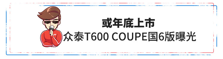 日前,有相关媒体曝光了众泰T600 Coupe国六版车型的路试谍照,新车外观与现款车型没有明显区别,动力上则换装了装了代号4A15T的1.5T发动机,以满足国6排放标准。新车预计2018年底上市,众泰T600 Coupe国6版继续沿用了“大众脸”,众泰在外观设计这方面还是要加把劲啊。(图片来源:易车)