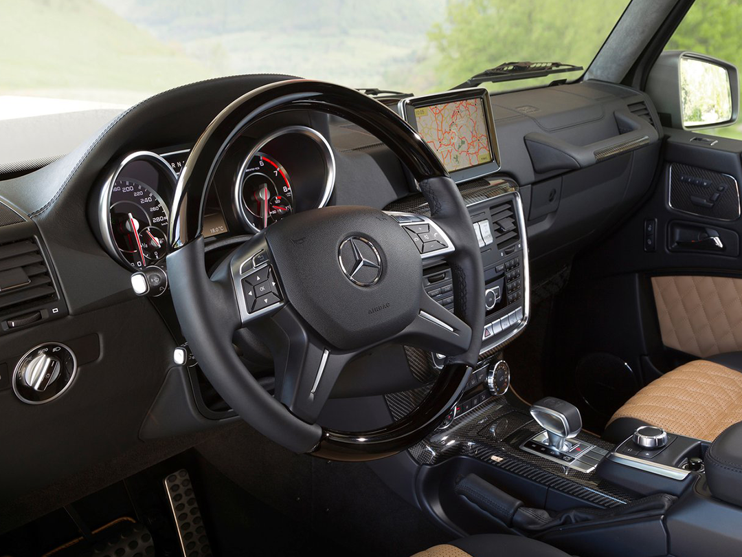 6.0T的动力配上全时四驱系统,同时还有前中后三把差速锁加持,使得奔驰G级有越野之王的称号。G 65的外形尽管粗犷,但内饰设计还是颇为豪华的,各处都有真皮包裹。
