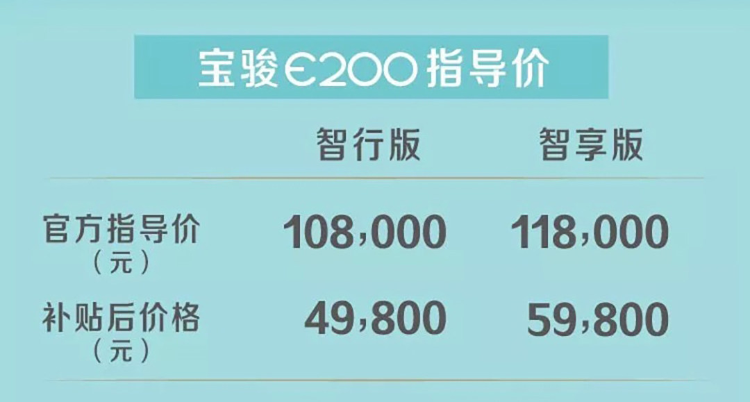 日前,宝骏旗下全新纯电动微型车宝骏E200正式在广西地区上市,新车共推出两款车型,官方指导价区间为10.80-11.80万元,补贴后售价区间为4.98-5.98万元。宝骏E200 NEDC工况续航里程为210km,主打城市通勤两座微型车,其小巧的车身设计是其最大特点,210km的续航满足市内通勤问题不大,至于外观好看与否就见仁见智了。