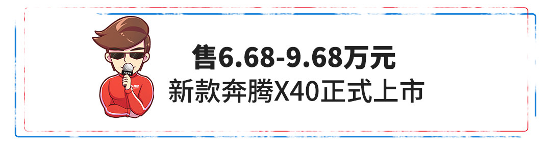 2019款奔腾X40 正式上市,新车共推出五款车型,售价为6.68-9.68万元。对比于此前上市的网红版车型,新车仅在配置方面作出调整,取消了发动机怠速启停功能,增加了铝合金双色轮圈、电子驻车系统(EPB)、前排座椅加热、车内氛围灯、流媒体后视镜等功能。2019款奔腾X40依旧搭载1.6L自然吸气发动机。配置的提升,增强了新车的竞争力,但与宝骏以及瑞风等对手相比,并没有明显的优势。(配图为现款车型)