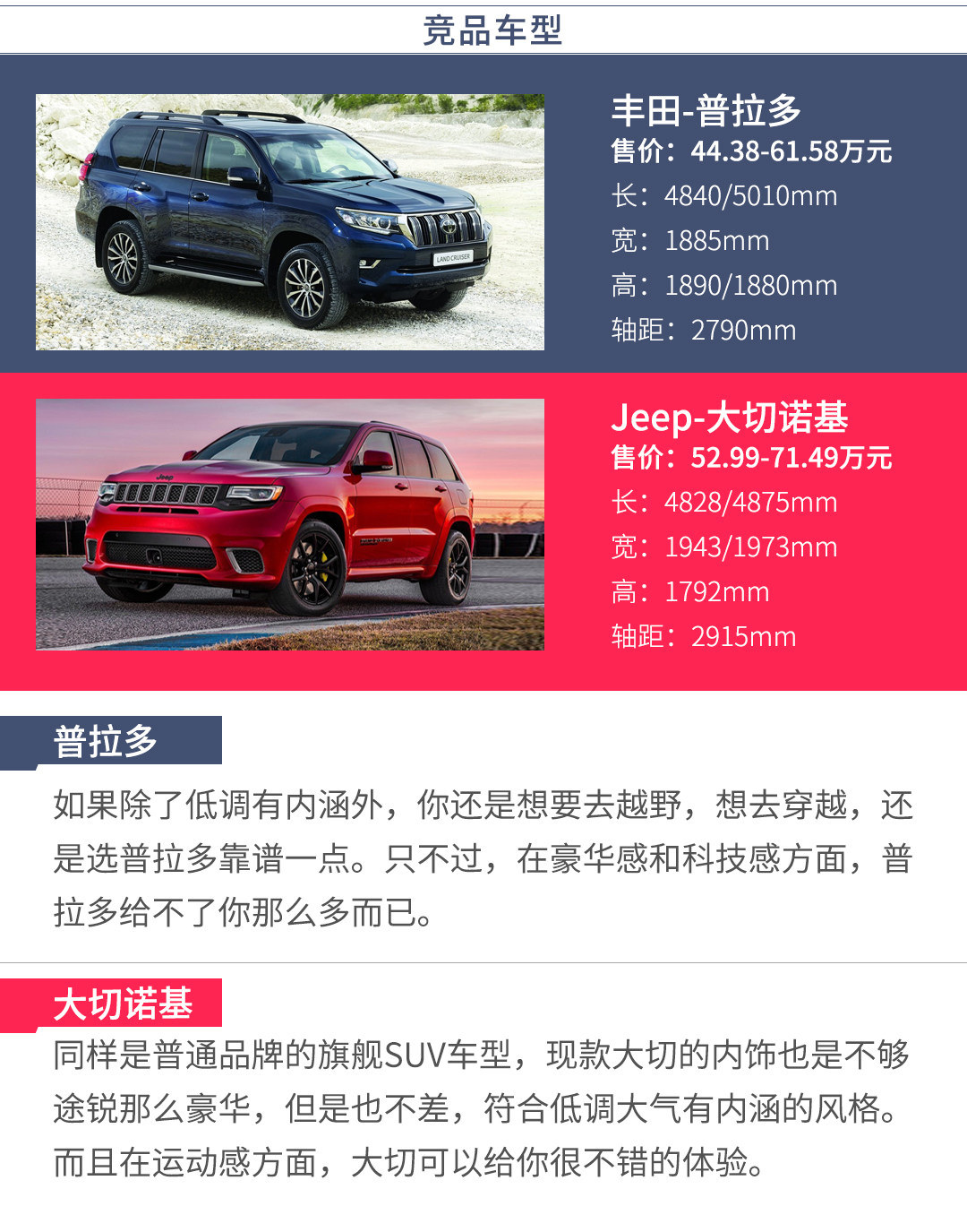作为一款定位这么高的旗舰SUV,即使是最低配车型,配置也是应有尽有,胎压监测,倒车影像、电动座椅这些最基本的配置你就不用多虑了。即使是最低配车型,全景天窗、全液晶仪表、手机无线充电、车联网都已经配备了。所以我们更应该在动力或外观上作出抉择。