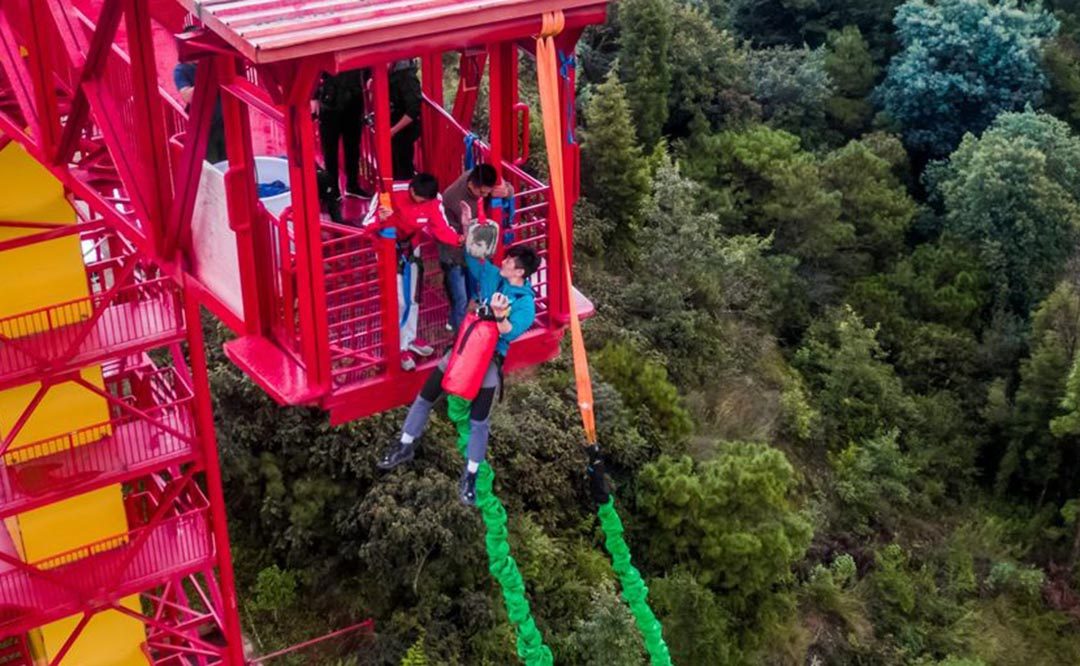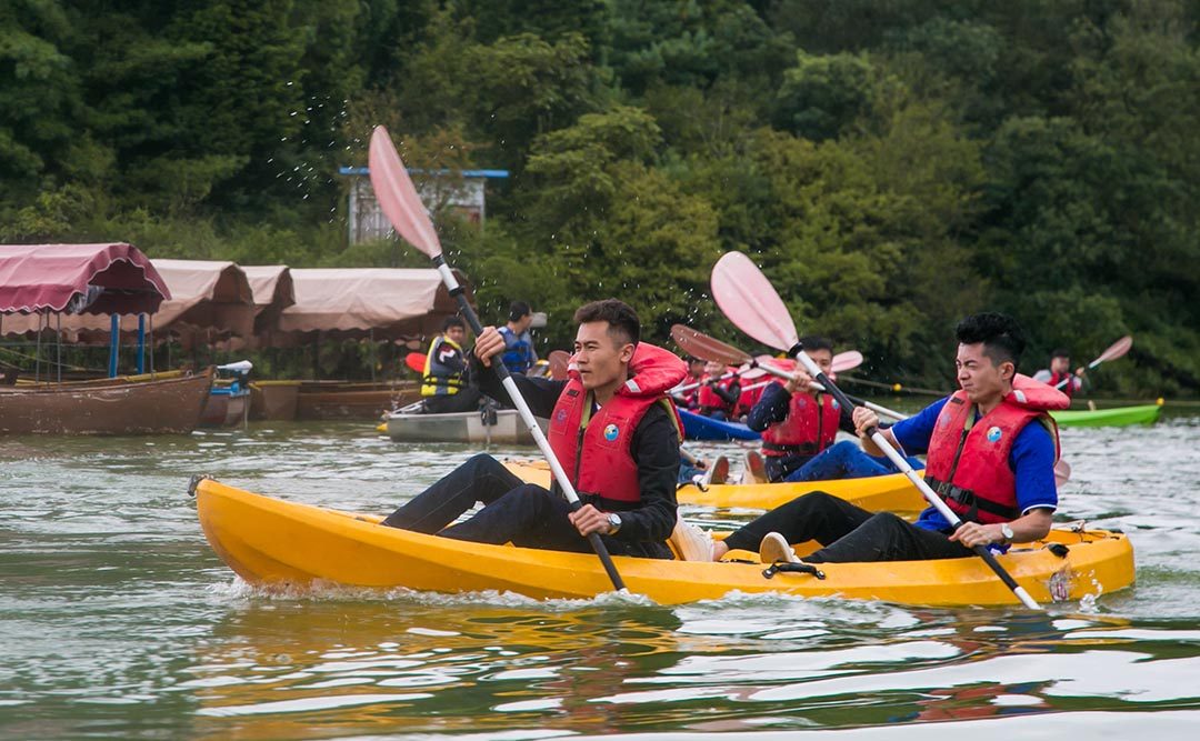 每个小队分成两组,分别参加不同的挑战项目,蹦极项目考验的是胆量,毕竟从高处往下坠落会让普通人产生一种恐惧感,而皮划艇项目考验的是力量和体力,以及对方向的控制。