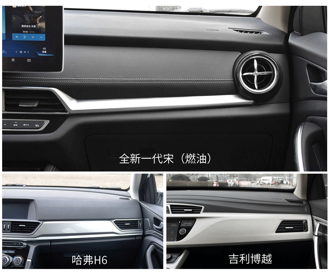 外观是给人看的,车主每天接触最多的仍是座舱,如果整个车舱给人的廉价感太强,那开车的心情自然也好不到哪儿去。值得欣慰的是,无论是全新一代宋,还是博越、哈弗H6,在内饰用料上都下足了本,中控台、门板等部位都使用了大面积的软性材质覆盖;而且在细节处理上也是各有心得,比如全新一代宋的仿皮革缝线,哈弗H6、博越的拉丝面板等。