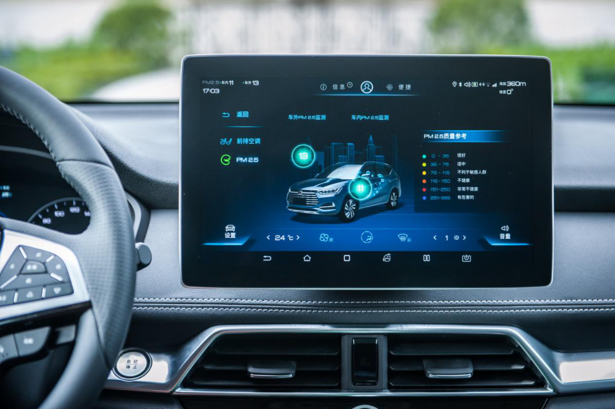 只要你亲身去体验,就会发现三款车中全新一代宋的车舱异味控制最为到位,环保材料的应用比较全面。而且高配车型还可选装PM2.5绿净系统,可以在6分钟内使PM2.5浓度从800ug/m3降到35ug/m3,给你满车清新。